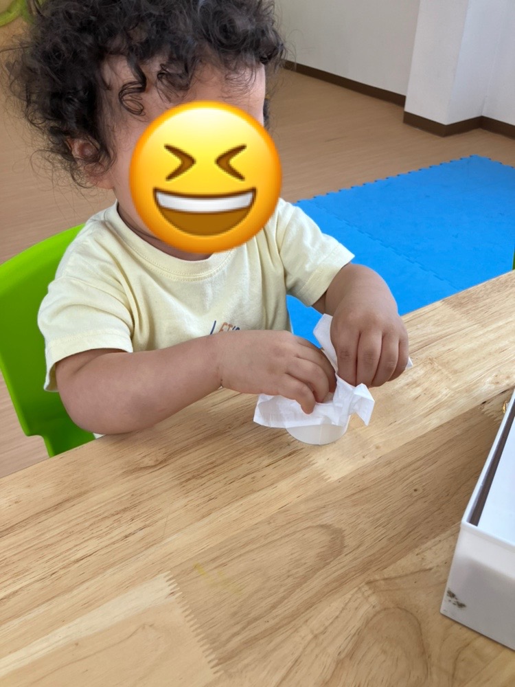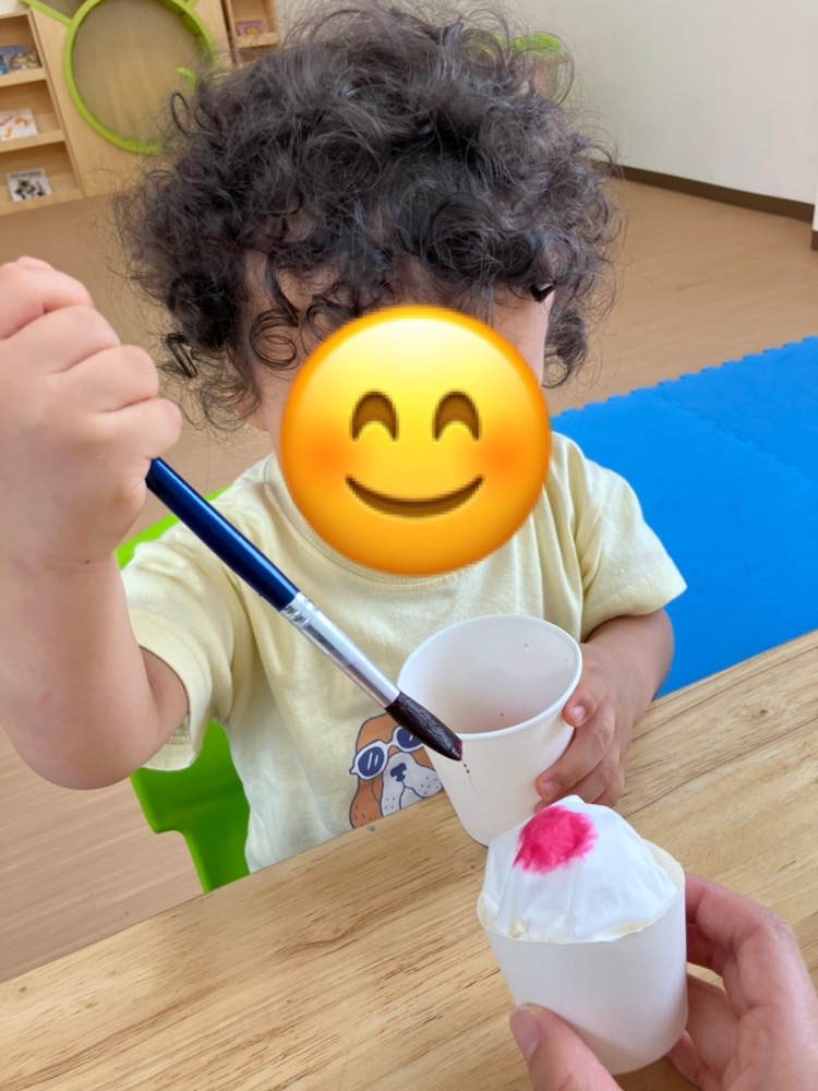 ティッシュに馴染んでいく色水にビックリした表情でした^^