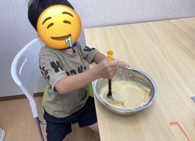 生地作りでは、疲れで腕をプルプルさせながらも一生懸命に混ぜ、