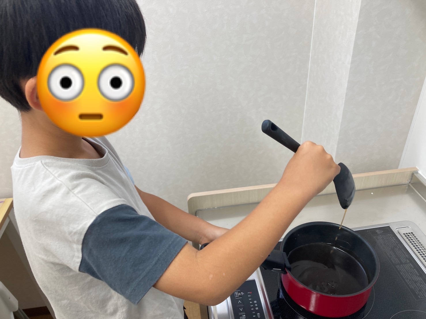 ①〜④の材料をとろみが付くまで混ぜながら加熱して作りました😆