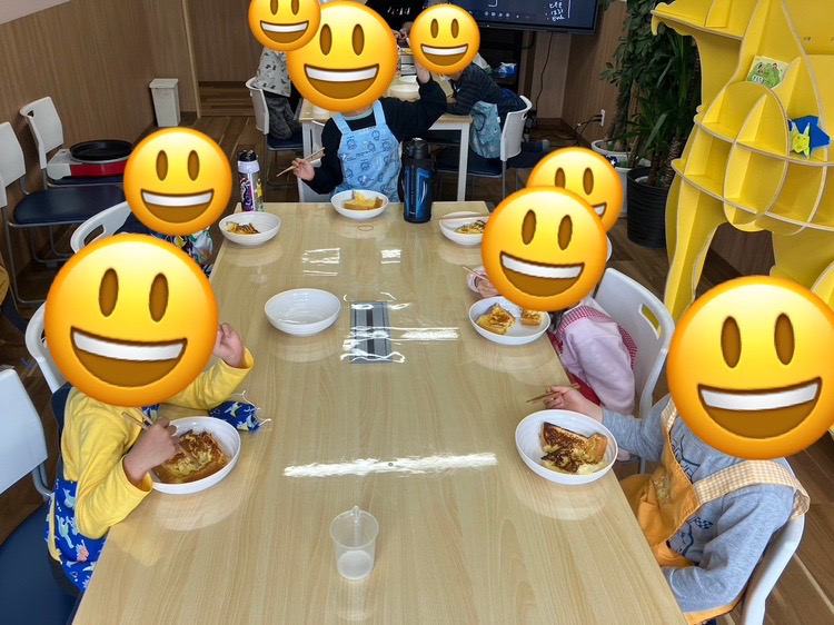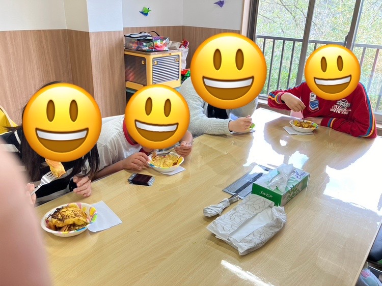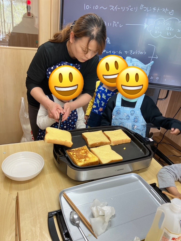 その後は、職員と一緒に焼いてみんなで出来上がったフレンチトーストを美味しくいただきましたよ😊