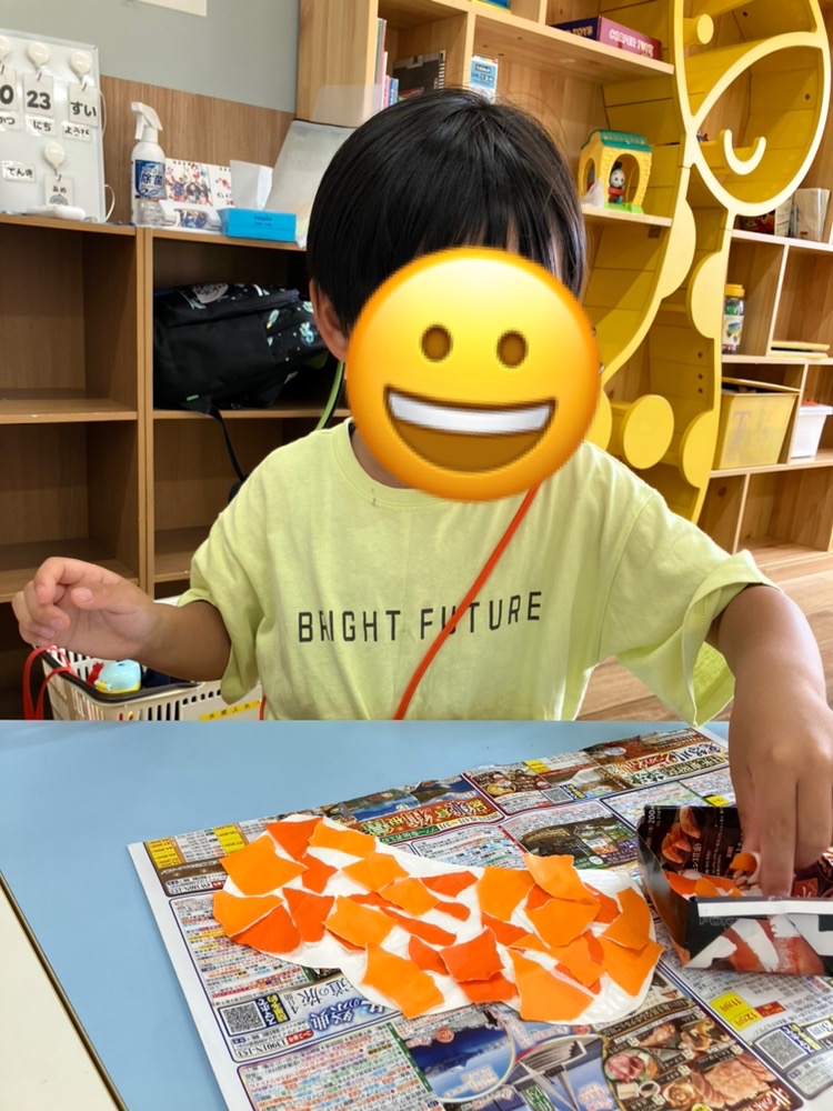 紙皿の台紙にペタペタとちぎり絵をしました💠