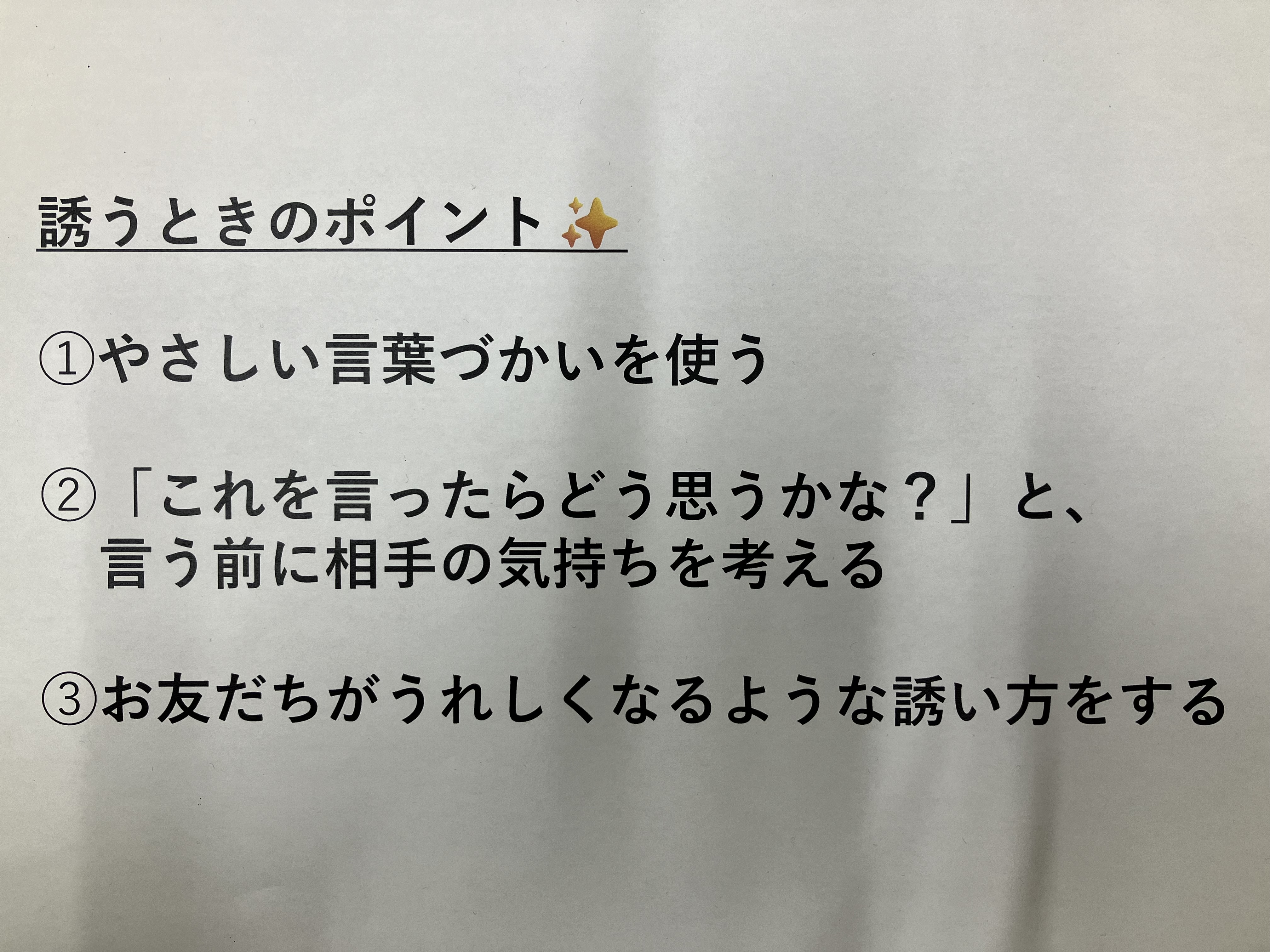 本日、3年生以上の活動はSSTで「仲間の誘い方」についてでした✏️