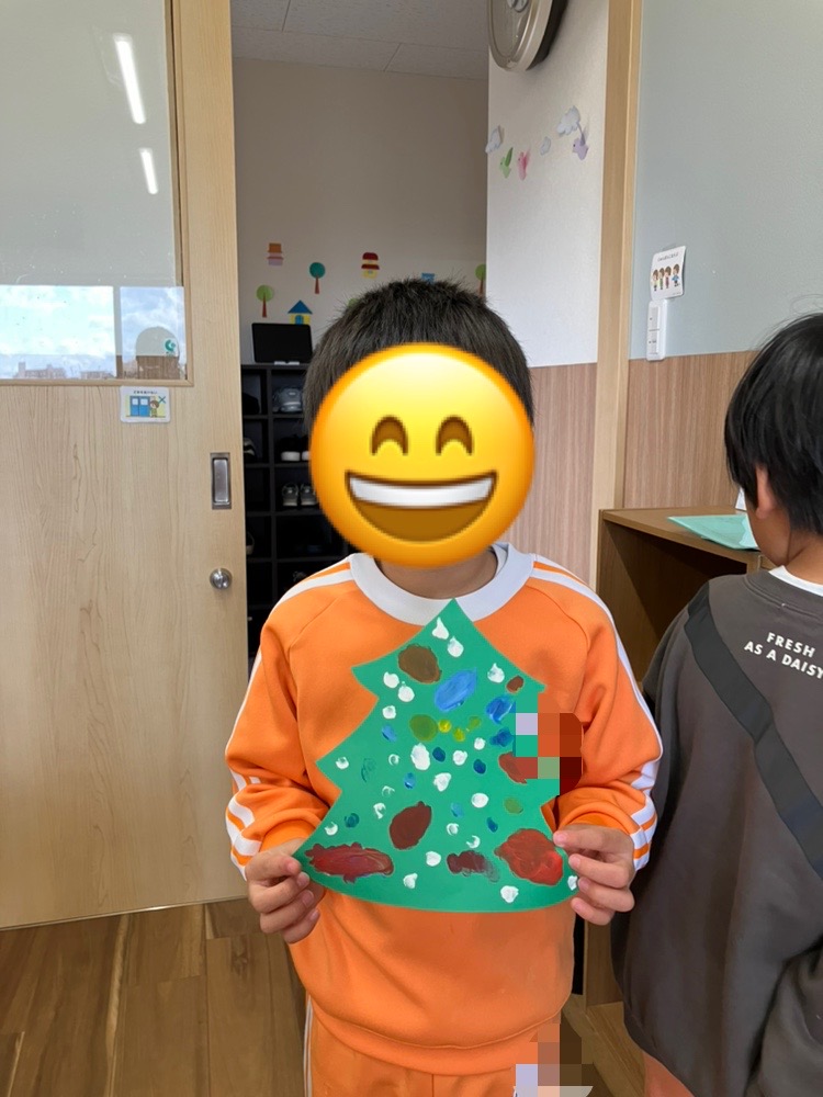 本日の児童発達支援では、フィンガーペインティングで「ツリー作り」をしました✨🎄