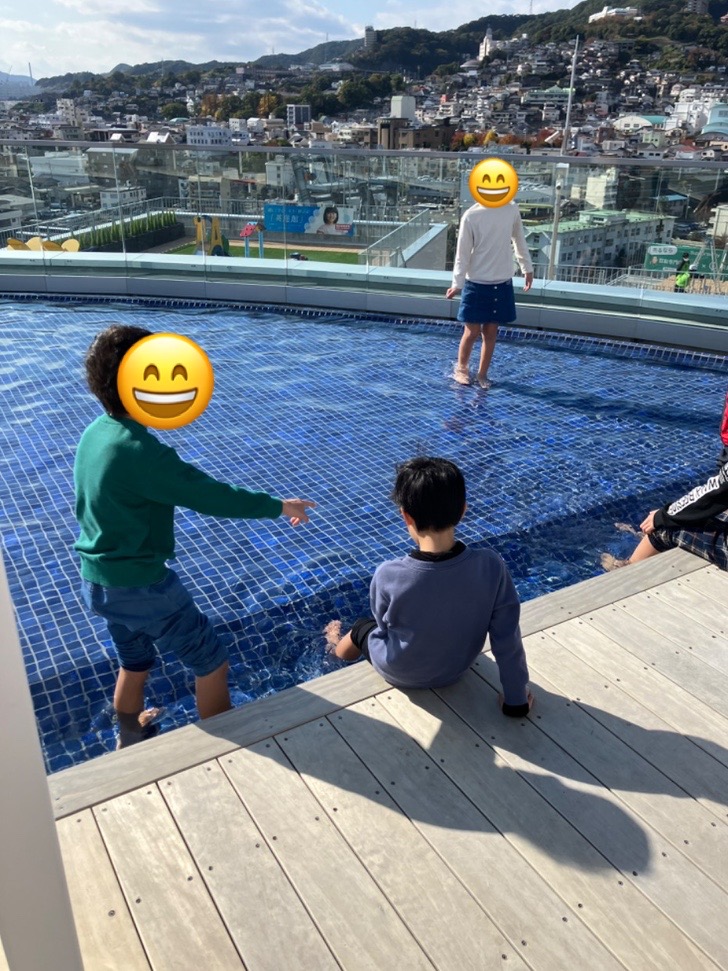 足湯に浸かって「気持ちいい〜😍」と喜んだり…