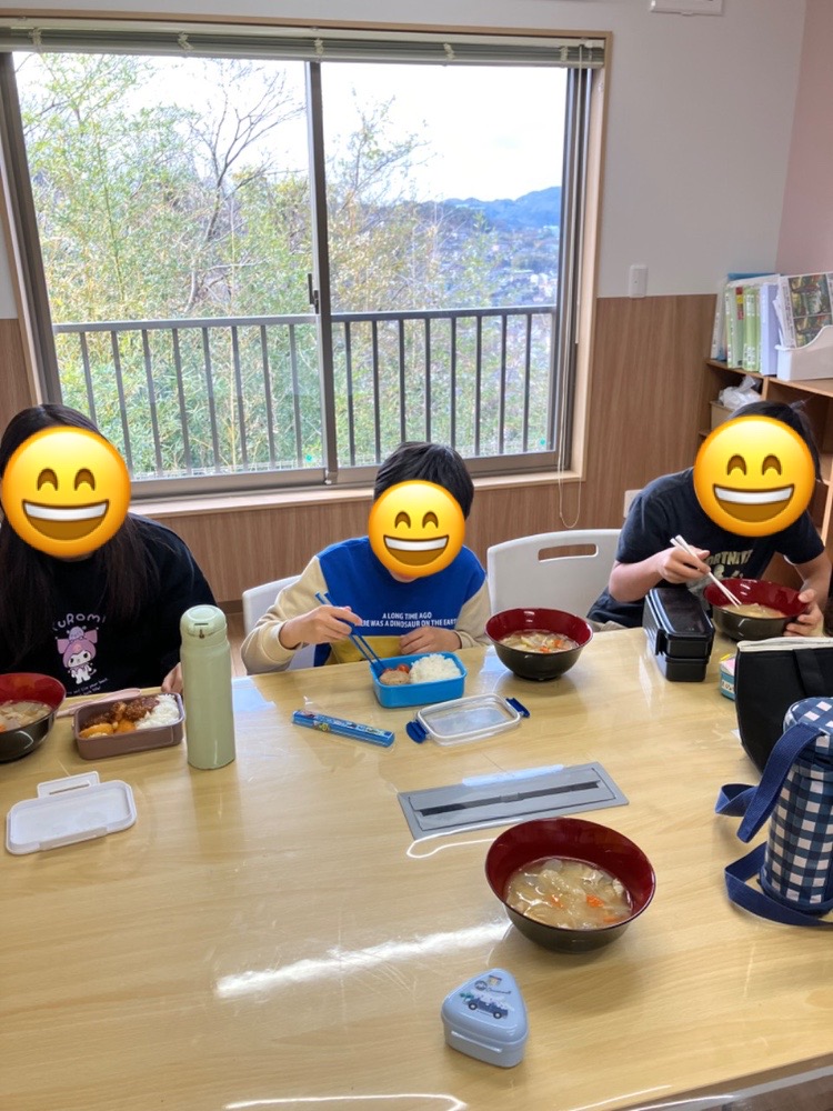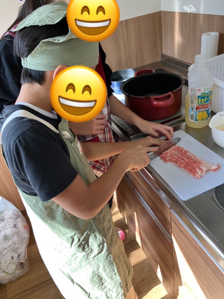 具沢山の豚汁を上手に作りあげ、「おいしい!最高~😆」と言いながらみんなペロリと完食してくれました✨
