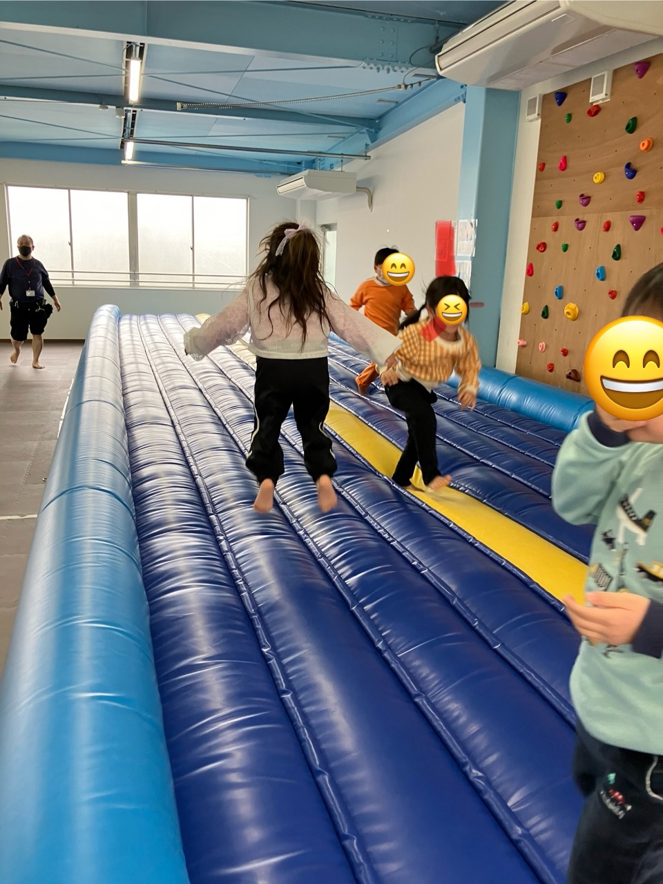 エアートランポリンやままごと遊びが大人気で、みんなでピョンピョン跳びはねたり、走ったり…🎵