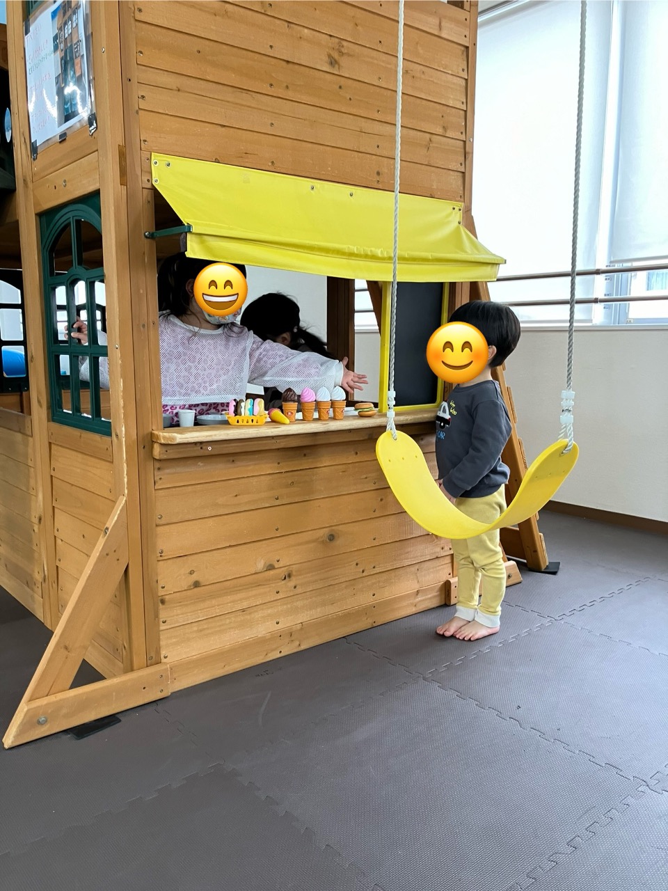 ままごと遊びでは、おいしそうなお弁当やアイスを作り「いらっしゃいませ〜!」とお店屋さんに変身して
