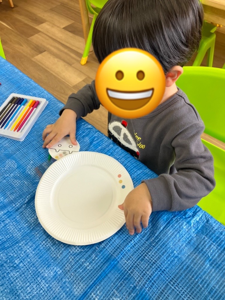 紙皿とシール、色鉛筆等を使用して女雛と男雛を作りました!