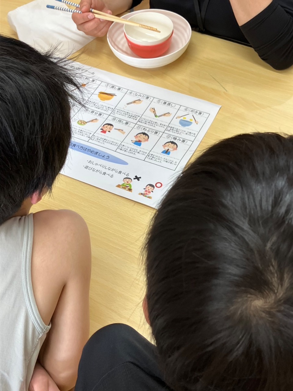 本日3年生以上のお友達は、食事のマナーとして『してはいけないお箸の使い方』を学びました📚✨