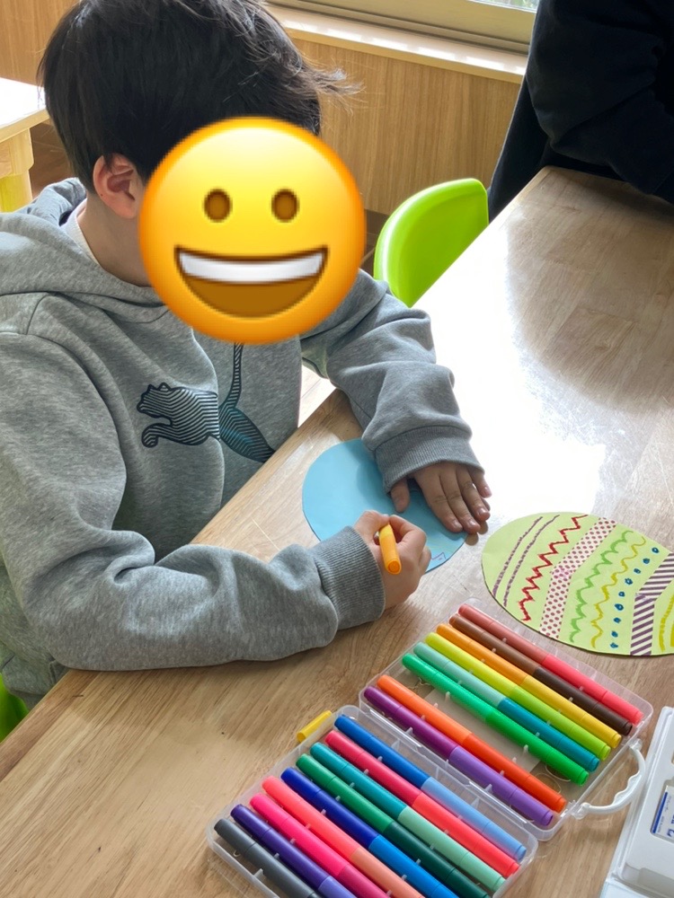 本日1.2年生のお友達には「4月の壁面製作」でイースターのたまごを作ってもらいました🥚🐇