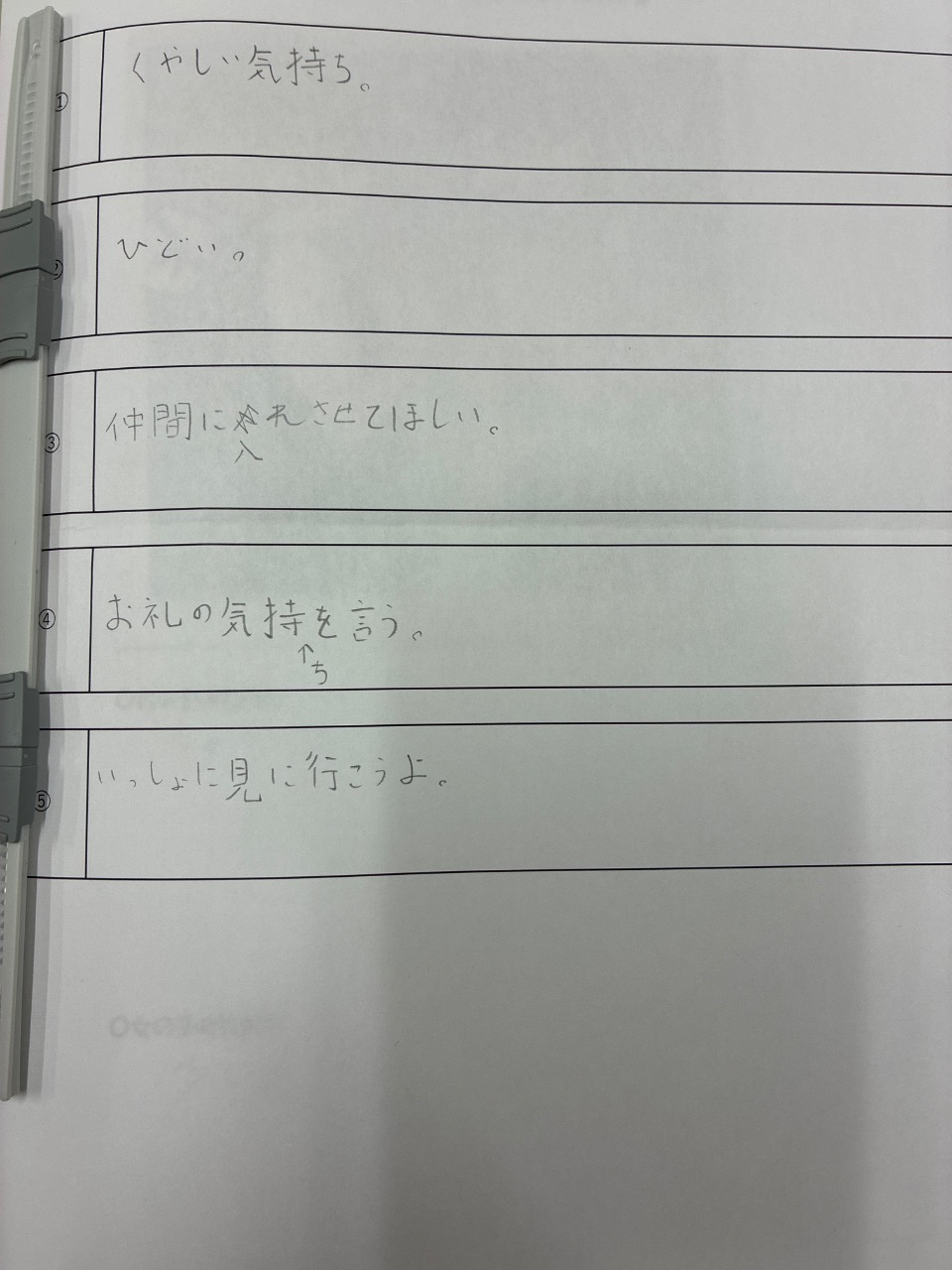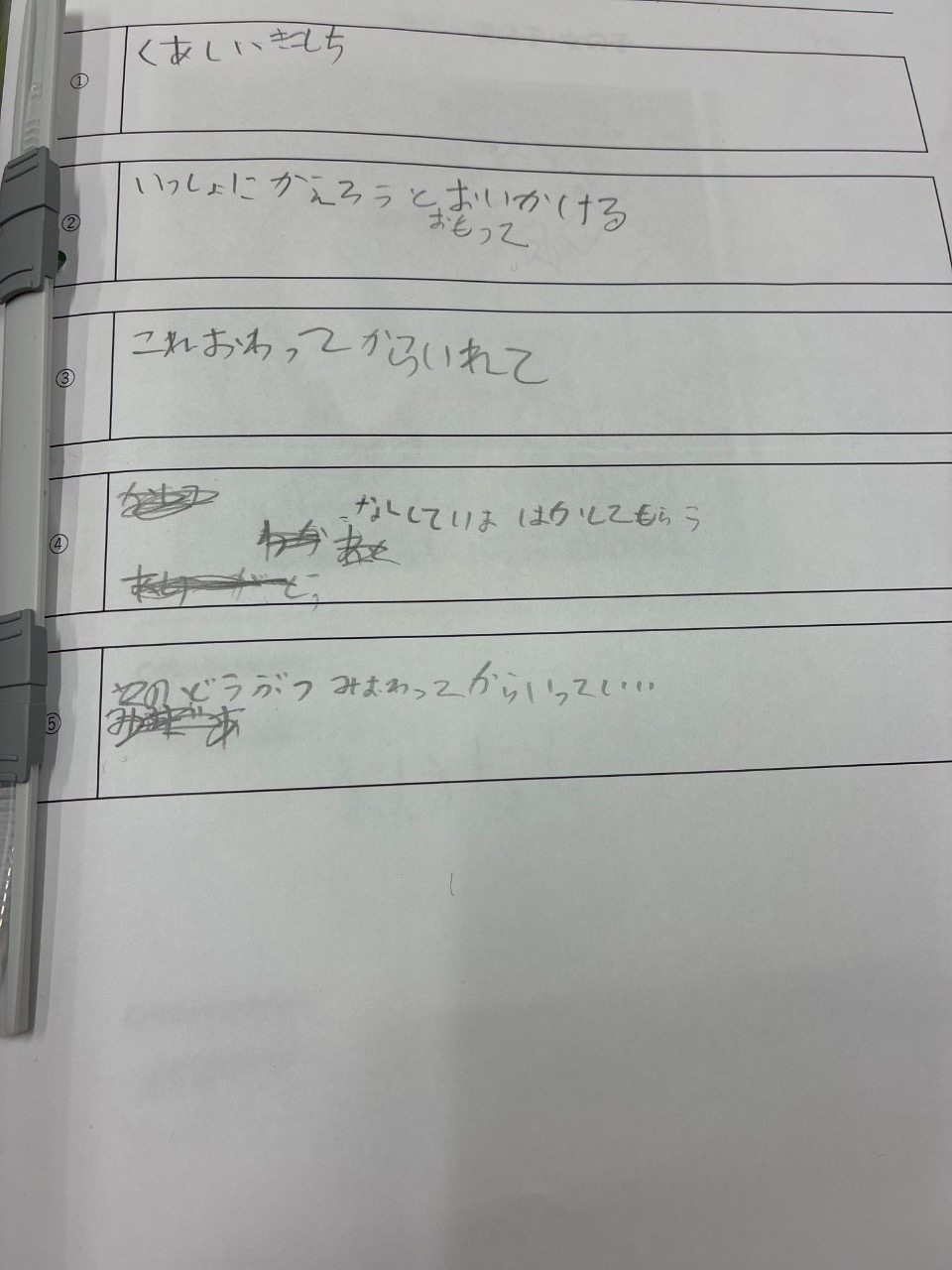 (4)赤鉛筆を忘れてしまいました。隣のお友だちが『使う?』と言って差し出してくれました。