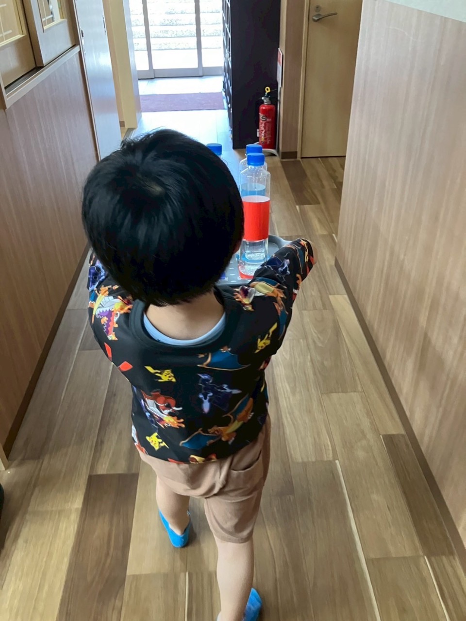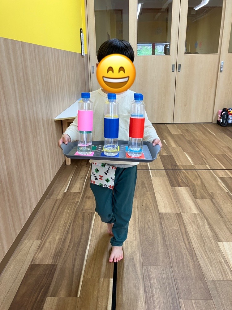 2番:ペットボトルを乗せたトレーを持って線の上を真っ直ぐ歩く