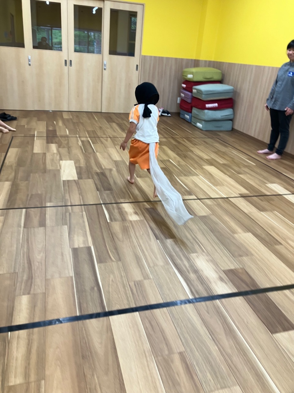 まずはじめにタオルを頭巾の代わりに頭に巻いて、忍者に大変身✨