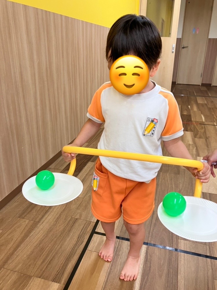 特に②は、紙皿の中でゆらゆらとボールが動くため難しく、苦戦する姿も見られました。