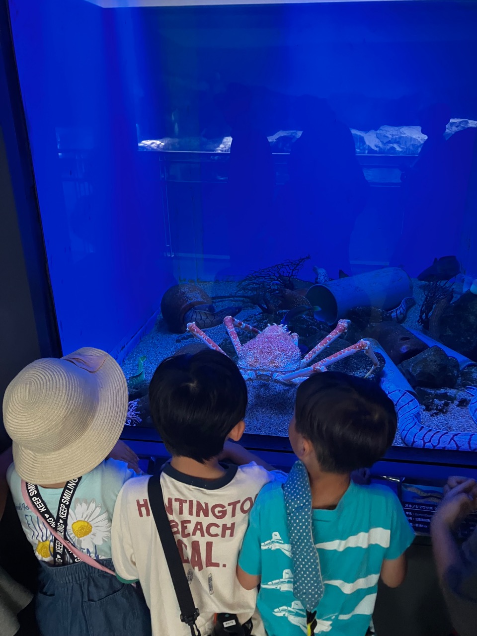 ペンギン水族館につくと大きな水槽、たくさんの魚たちに夢中なお友達🐠🐟