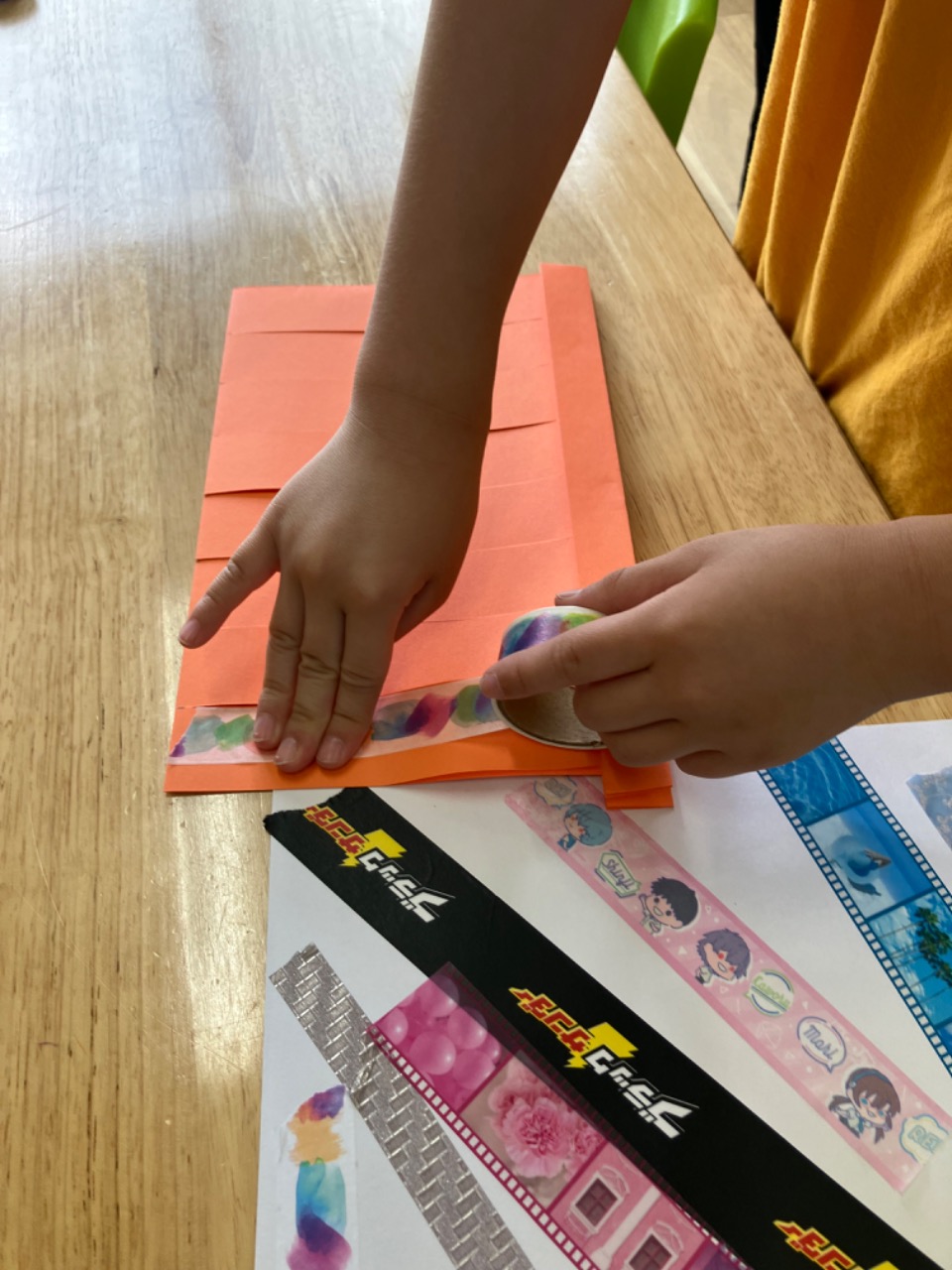 想像力と指先トレーニングをかねて、マスキングテープを手で切ってもらいましたが、苦戦しながらも頑張って取り組みました!