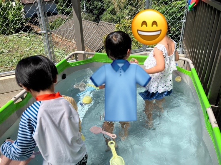 玩具を使ったりしながら、水に親しみを持ち、楽しそうに遊ぶお友達☺