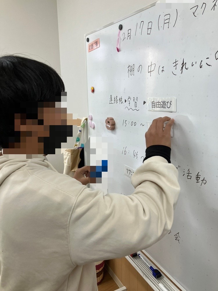 日頃手書きでスケジュールを提示していますが、子供達で何が必要かをそれぞれ考えてもらい、パソコンでの文字の作成、ラミネート、マグネット貼りを行い、手作りのスケジュールマグネットが完成しました☺️自分たちで作ることで、これまでよりもよりスケジュールを意識して行動ができるようになれたらと思います。
